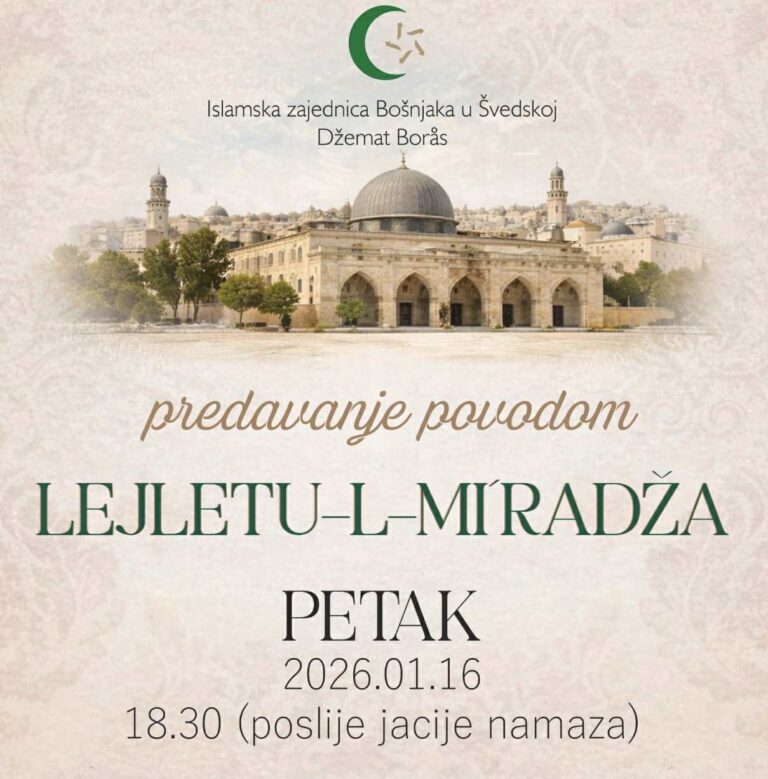 Obavještavamo Vas da će se redovna skupština džemata održati u subotu, 14. februara 2026. godine, s početkom u 13:00 sati.